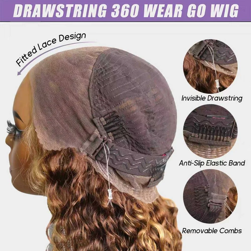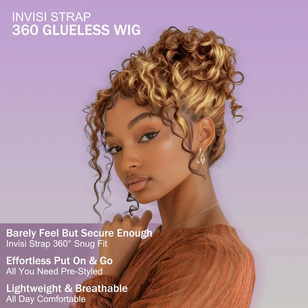 Glueless Easy Wear Highlight Water Wave 360 Lace Wig with InvisiFit Adjustable Straps and Pre Cut Lace for a Natural Look
